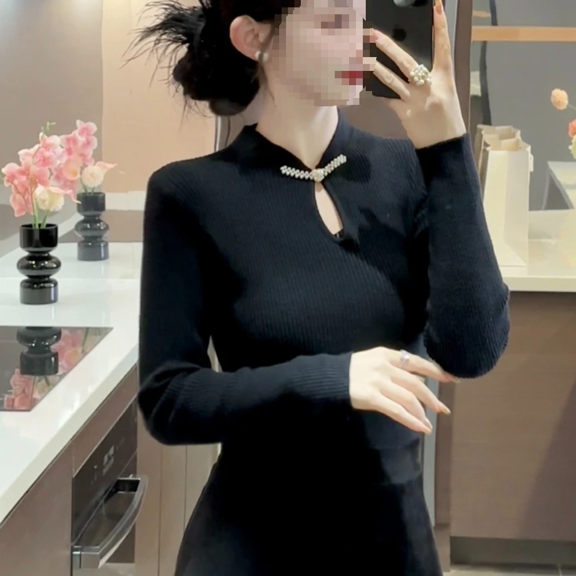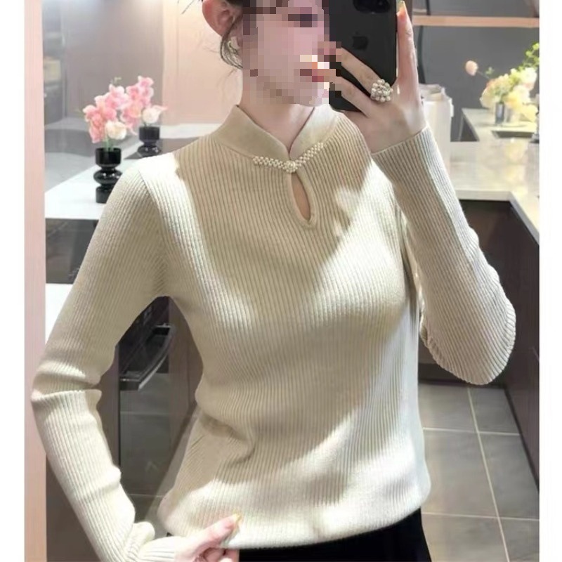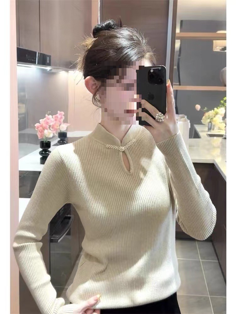 Zhou Zhou Knitwear New Style Half-High Collar Buttoned Hollow Knitwear in Oatmeal Color