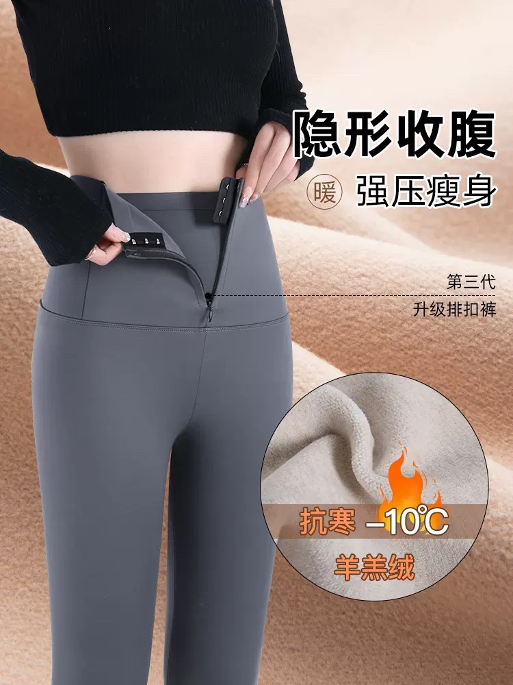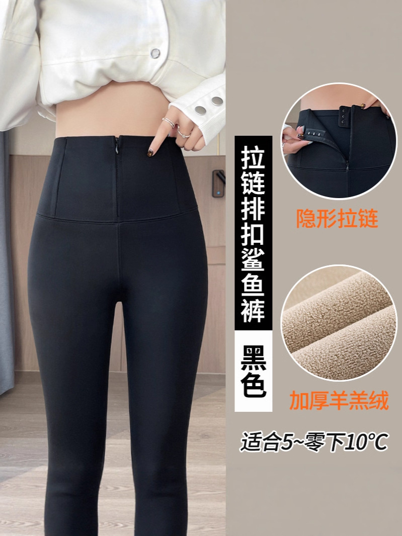 Zipper Tummy Control Shark Pants for Women, Autumn and Winter Outerwear, Fleece-Lined and Thickened Leggings, High-Waisted Tight-Fitting Shark Butt-Lifting Pants