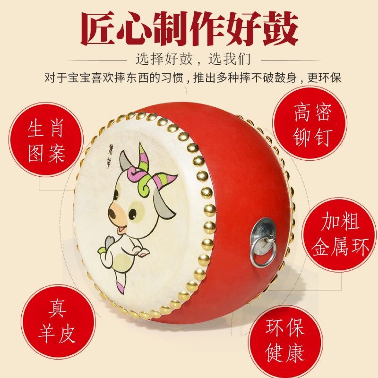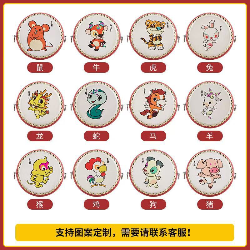 Zodiac Drum Children's Rhythm Cowhide Beats Chinese Children's Toys Kindergarten Baby's Musical Instruments Zodiac Beats Small Drum