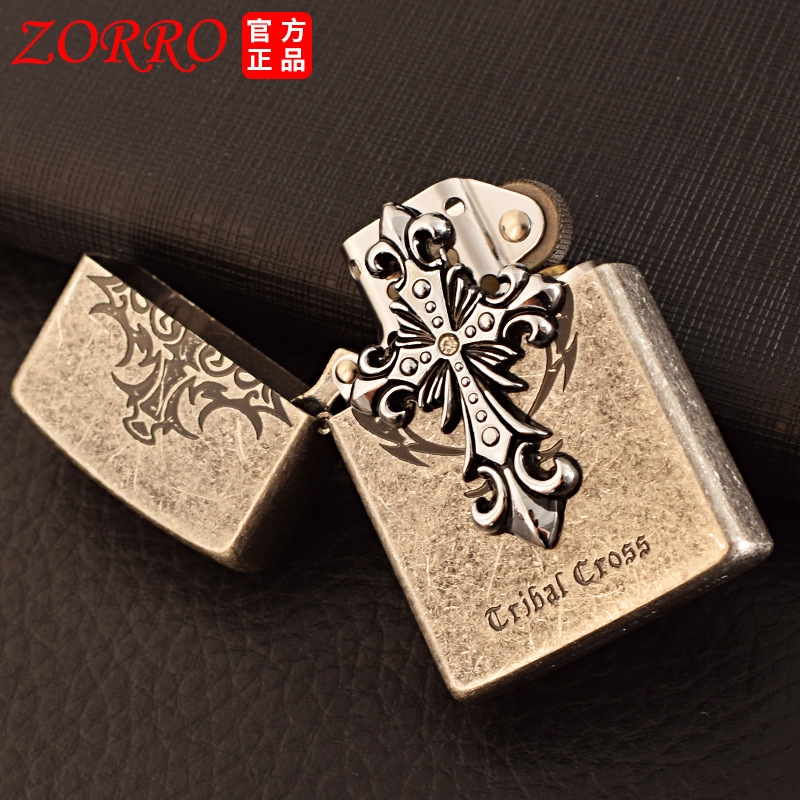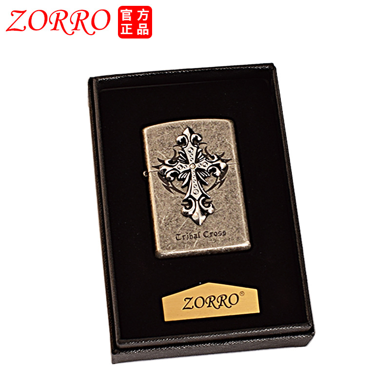 Zorro kerosene lighter ancient silver cross three-dimensional stickers creative retro grinding wheel lighter men's gifts wholesale