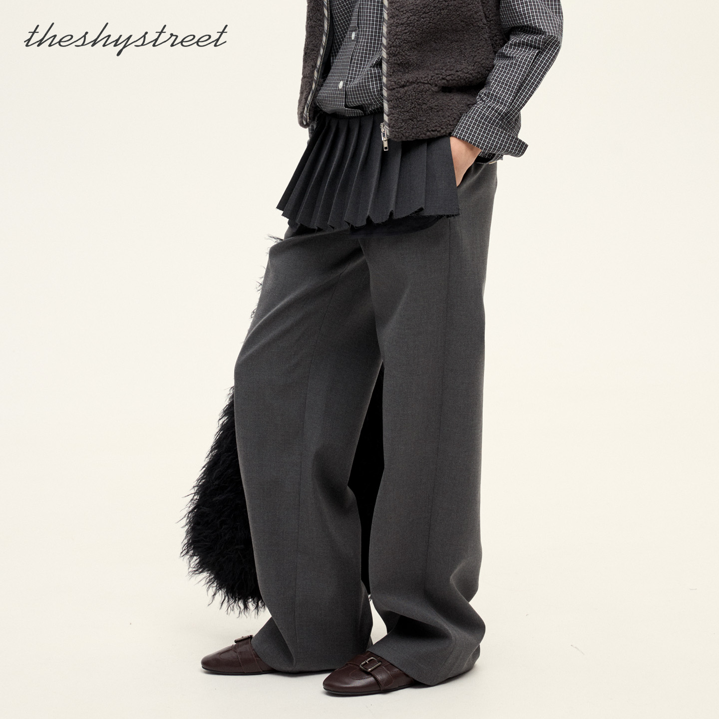 「Yameng」 High-Waisted Structured Arc-Shaped Zipper Fleece-Lined Material Spliced Softshell Pants P28E「Erosion Gear」