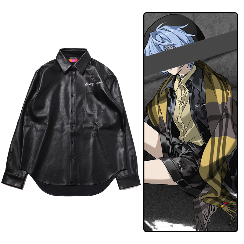 Mishima Miku Ev Ayanami Rei Style Pu Leather Embroidered Loose Shirt, Unisex