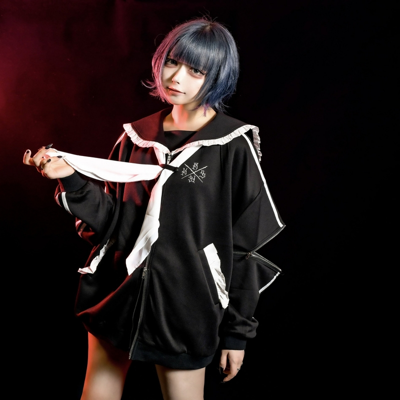 Japanese Single Super Popular Lace Detachable Sleeves Black Purple Blue White Jk Uniform Sailor Jacket Sportswear Sweatshirt Skirt Dress