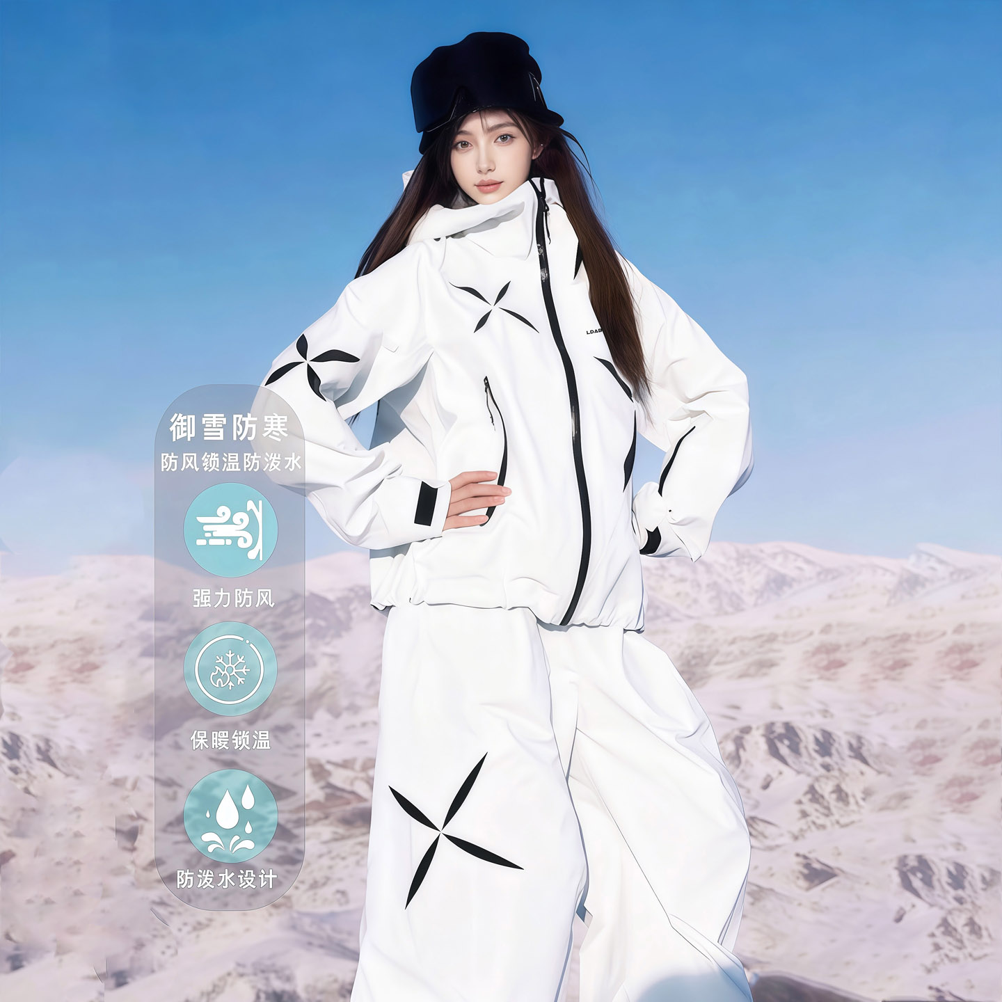 Kskm White Starburst Ski Suit Set for Women 2025 New Windproof Jacket Double-Board Snow Jacket and Pants Full Set of Equipment for Men