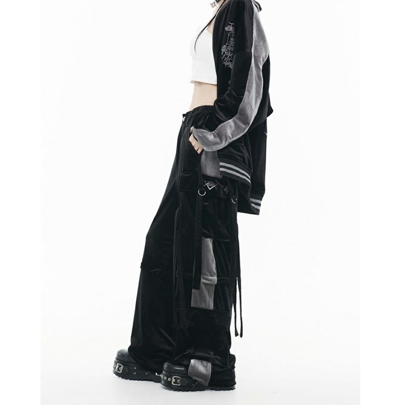 Japanese Dark Fashion Brand Reflem Visual Subculture Heavy Velvet Unisex Cargo Pants Detachable Mid-Length Pants for Men