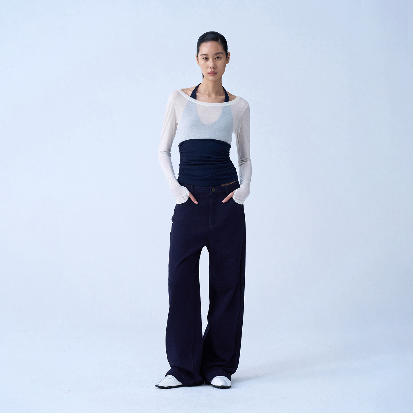 Ptj Navy Blue Dress Pants Workwear Cargo Pants Loose Casual Pants