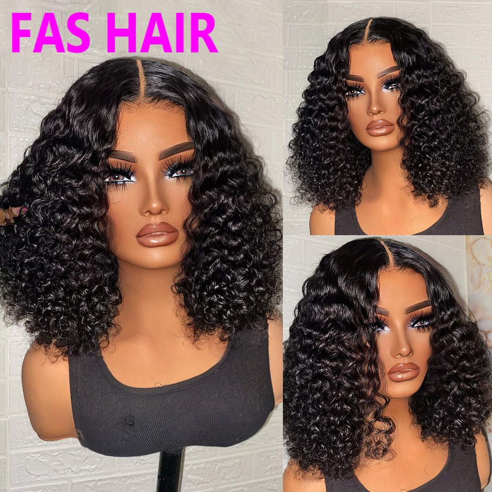 Human Hair Water Curly Wig Double Drawn Bob Headgear Short Wig