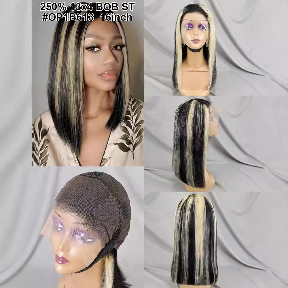 250 density 13x 4 frontal lace bob wig OP1B/613 100% human hair