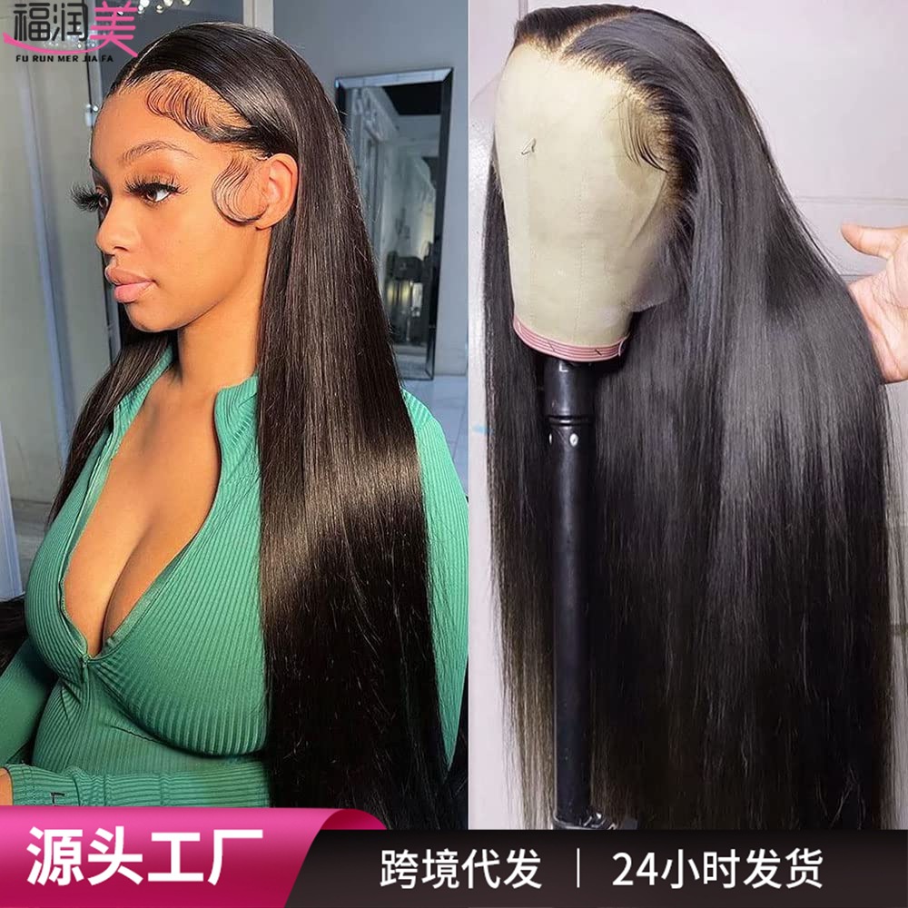 Cross-border Human hair head cover 13*4 front lace wig real hair silk real wig backbone straight
