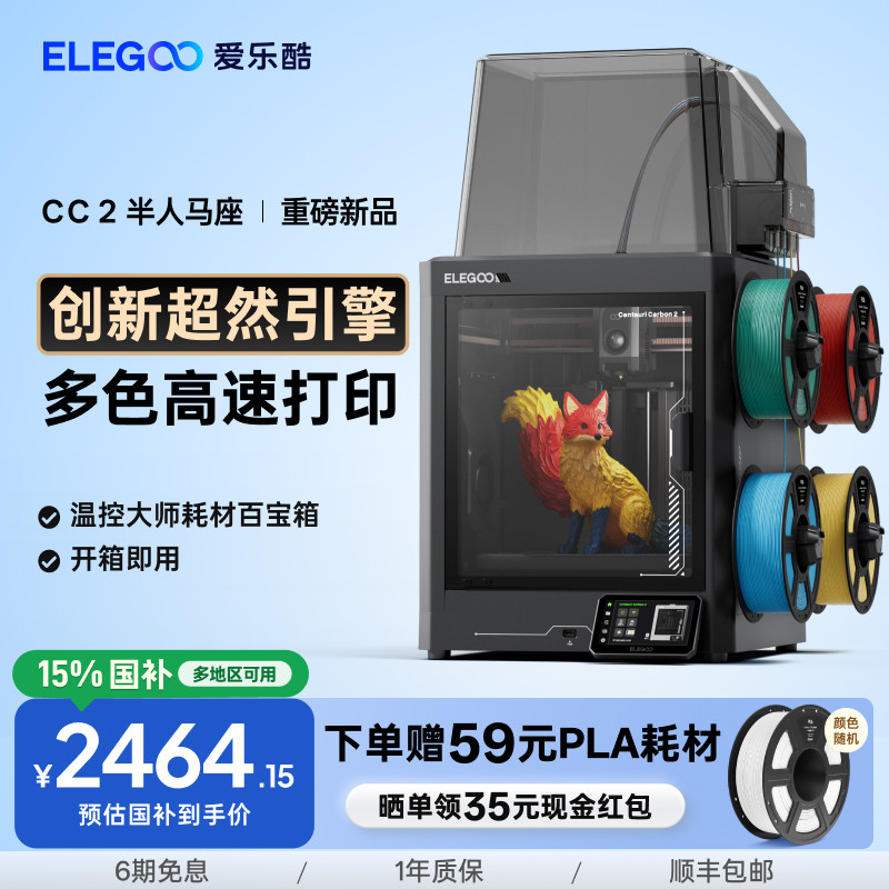 Elegoo/爱乐酷 Cc2 Multi-Color 3D Printer for Home Use, Ready to Use Out of the Box, Fully Automatic Leveling, High-Speed Printing, Desktop-Grade High-Precision 3D Printer Machine