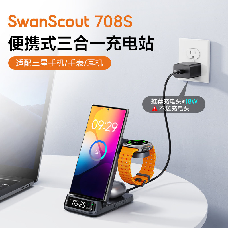 Swanscout708S Is Suitable for Samsung Galaxy Watch8 7 Watch S25+Z Flip7/6/5/4/3 Series Mobile Phone Clock Three-In-One Portable Wireless Charger