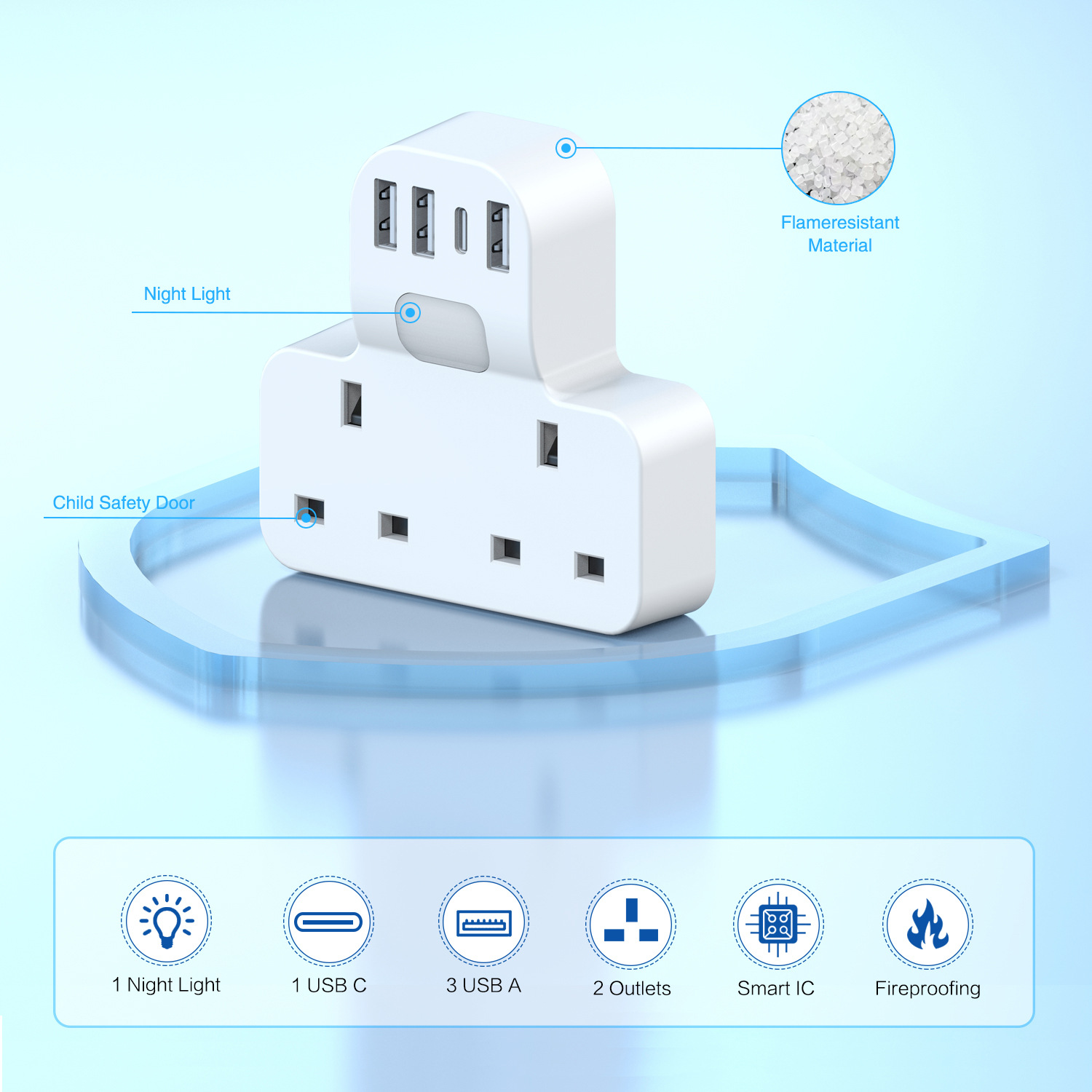Multi-country travel conversion plug PD20W fast charging Type-C + 3USB conversion plug multi-country adapter US gauge UK