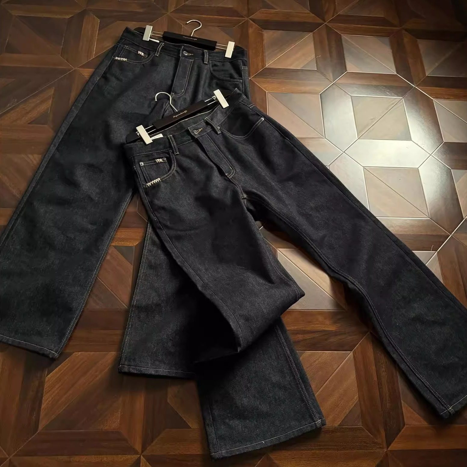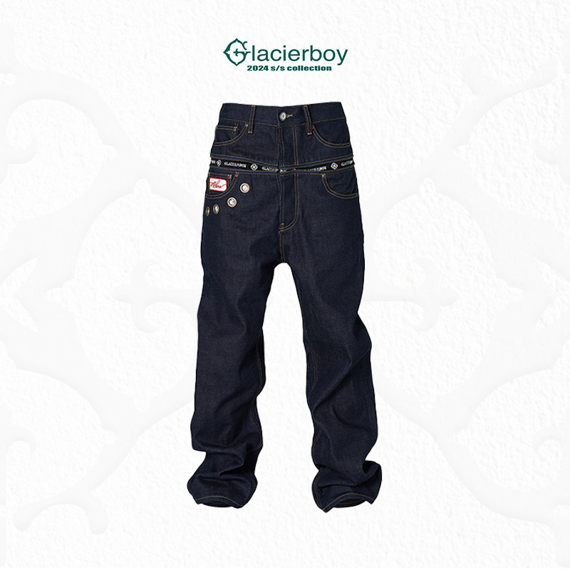 [Same Style as Yan Haoxiang] Glacierboy Zipper Raw Denim Zipper Straight-Leg Raw Denim Jeans