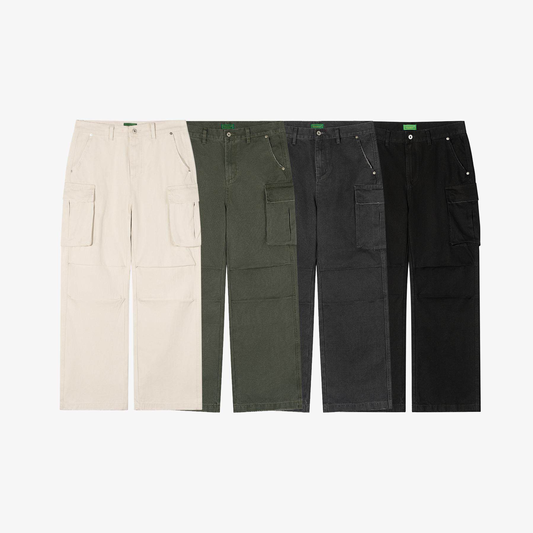 No Logo Straight-Leg Loose Washed Vintage Cargo Pants with Pockets and Pleated Paratrooper Pants