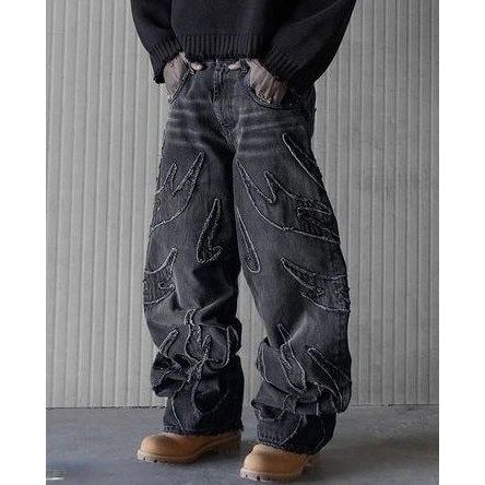 Baggy Jeans for Men Y2k Hip Hop Disssed Retro Black Pants O