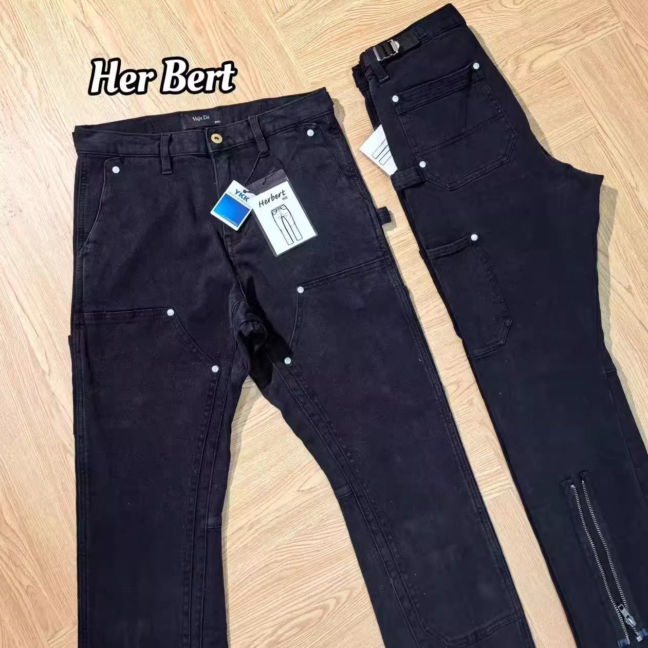 {Random Comparison} Original Size Vujade Zip Back-Slit Lumberjack Pants Cleanfit Slightly Flared Vibe Style