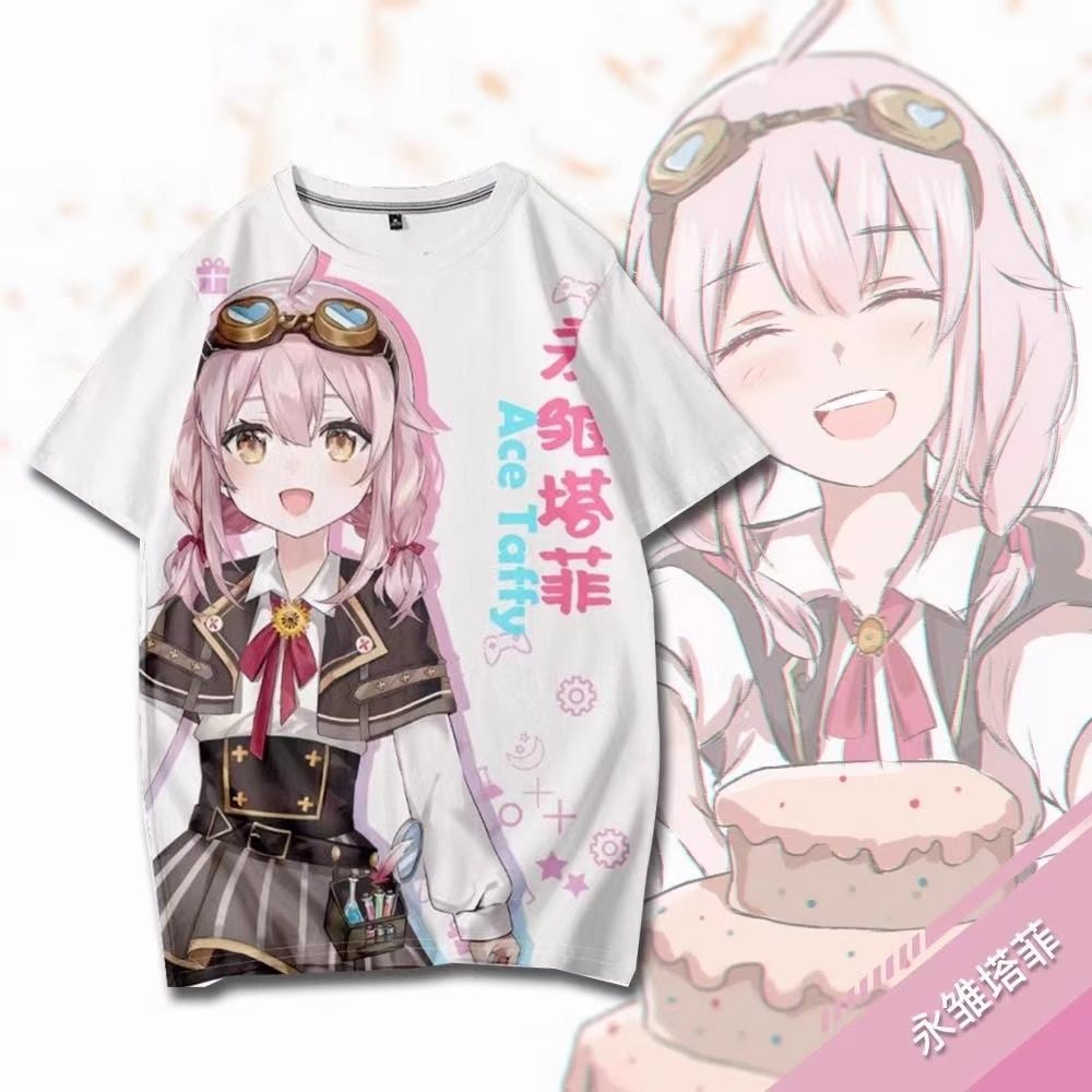 Yongchu Taffy Virtual Streamer Short-Sleeve T-Shirt Merchandise Cosplay Outfit Unisex Anime Sweatshirt Jacket Trendy Loose Clothing