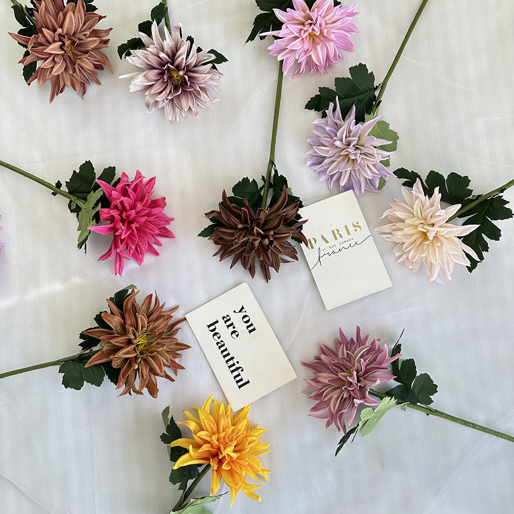 Cross-border New Product Simulation PU Dahlia Wedding Hotel Decorative Fake Flowers Flower Arrange Shop Window Landscape Artificial Fake Flowers