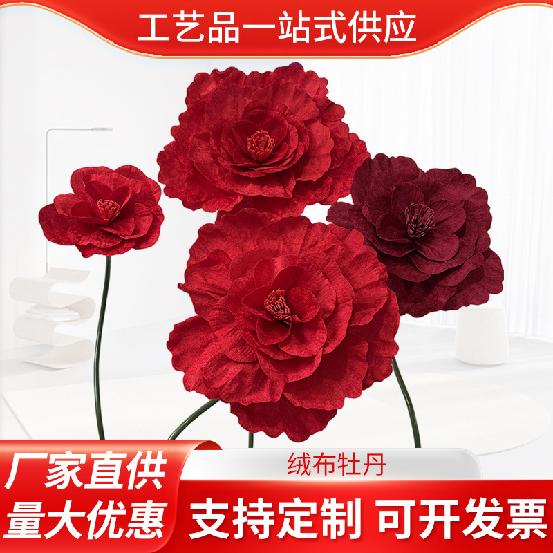 Large Simulated Velvet Peony Flower Wedding Fake Flower Window Display Photo Studio Shooting Props Artificial Rose Flower