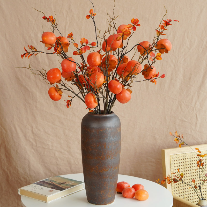 Persimmon Decorative Ornaments, Artificial Flowers, Dried Flowers, New Year Flower Arrangements, Fake Flowers, Living Room Decorations, Persimmon Bouquet for Good Fortune