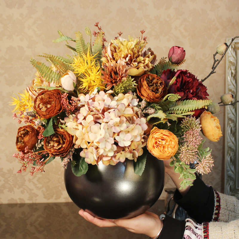 Bionic Hydrangea, Rose, Artificial Flower, Dried Flower Bouquet, Silk Flower, Indoor Living Room Decoration, Flower Arrangement, Fake Flower Art