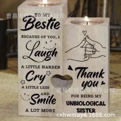 2023 Cross-border New Product Mother's Day Home Decorative Atmosphere Ornaments Heart-shaped Candle Holder Cross-border Wooden Ornaments