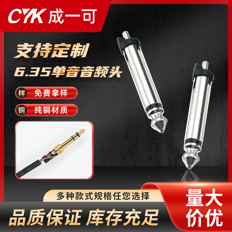 Dongguan 6.35 Mono Audio Plug Pure Copper Black Glue Audio Head 43.5 Long Tone Video Cable 6.5 Audio Plug