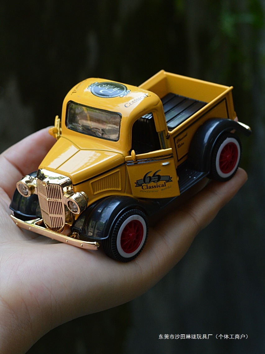 Q Version Retro Classic Car Artificial Alloy Car Model Sound and Light Pull Back Kidsren's Toy Pickup Truck Transport Truck