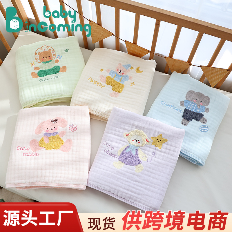 Six-layer gauze bath towel bamboo cotton breathable absorbent baby bath wrap towel terry embroidered pattern newborn sleeping quilt