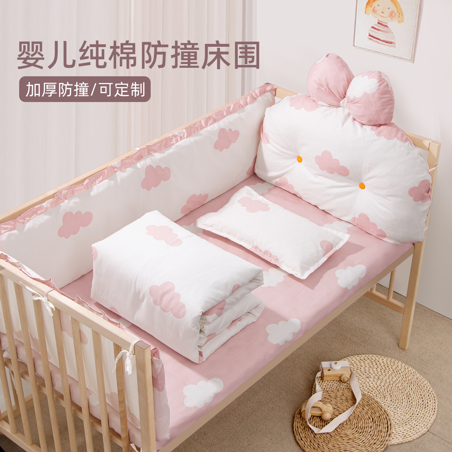 Baby Crib Fence Soft Padding Baby Bed Sheet Splicing Bed Guard Pure Cotton Anti-Collision Decoration Fence Cloth Removable and Washable