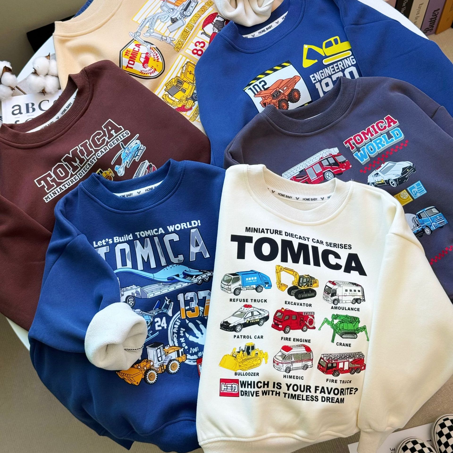 Children's Sweatshirt, New Autumn Style, Kids' Car-Themed Sweatshirt, Boys' Fleece-Lined Long-Sleeve Top, Boys' Autumn and Winter Pullover