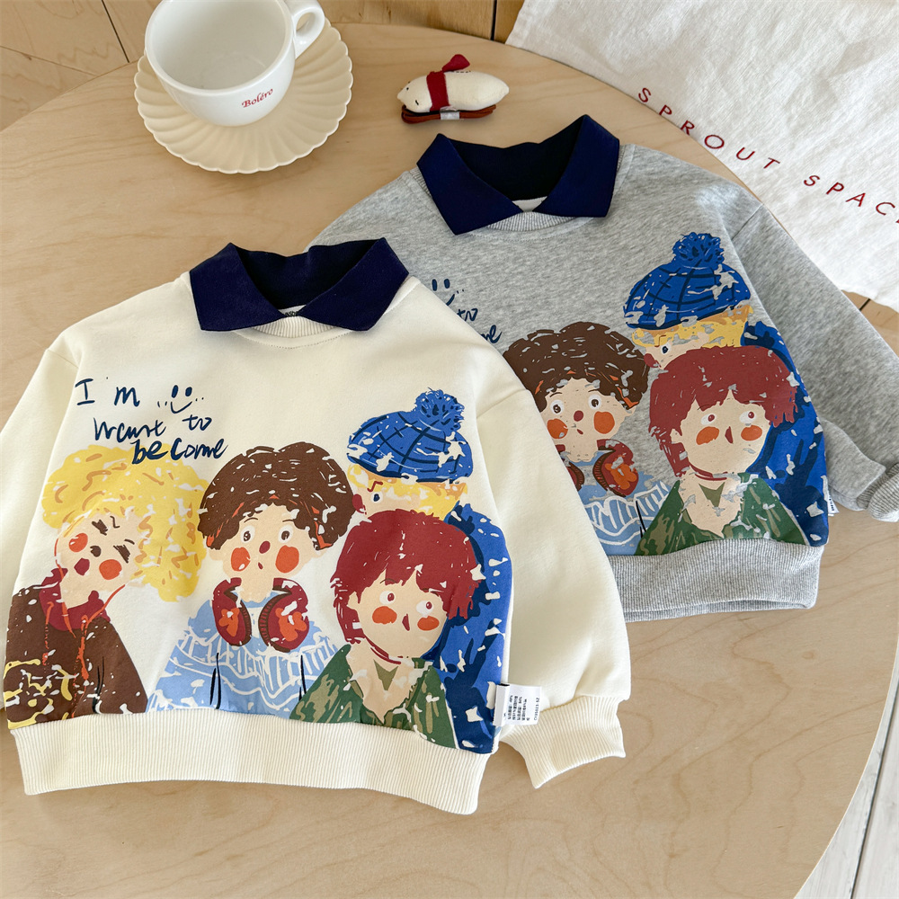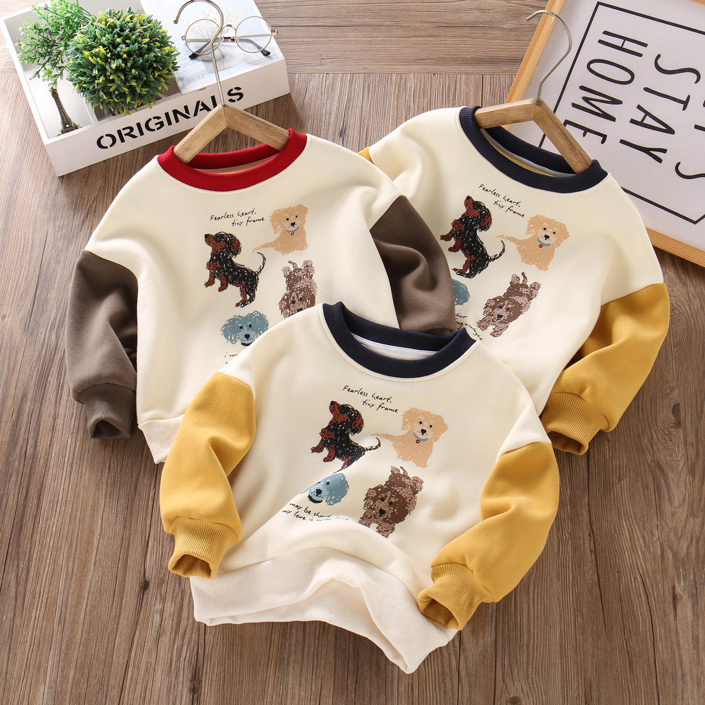 Infant and Toddler Velvet Sweatshirt, Baby Boy's Cute Puppy Top, Autumn and Winter New Style, Category a Boy's Versatile Cartoon Long Sleeve