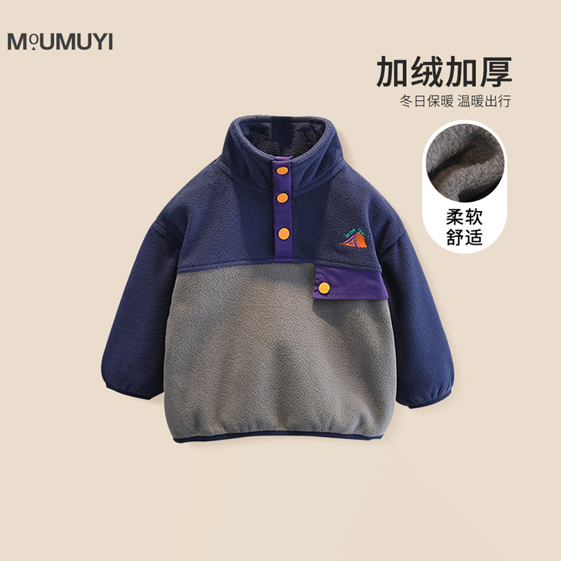 Children's clothing boys autumn and winter fleece-lined sweater base shirt small and medium-sized boys long sleeve thick coat anti-season wholesale tide