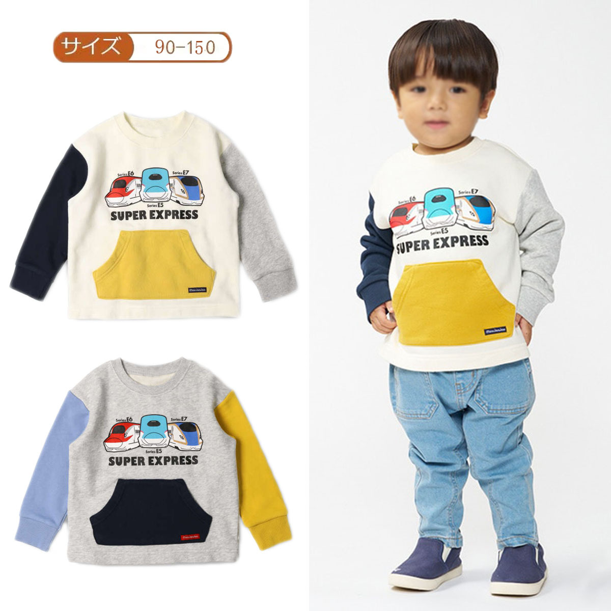 New Japanese Style Boy's Pure Cotton terry Cartoon Shinkansen Train Long-sleeved Sweatshirt Autumn and Winter Men's Treasure Warm T-shirt