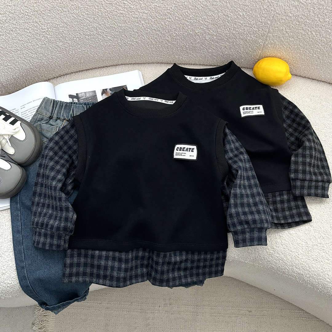 Handsome Baby Boy Children's Clothing Autumn Korean Style Plaid Shirt Vest Long-Sleeved Children's Outing Single-Piece Trendy Sweatshirt