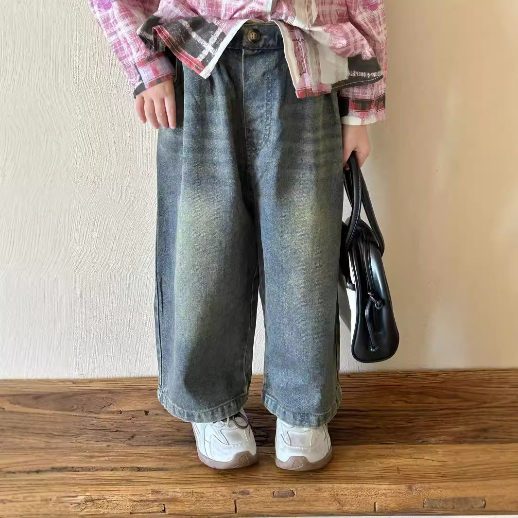 Non-Returnable Original Price 39 Kidsren's Pants Retro Distressed Washed Jeans for Baby Boys Versatile Straight Pants Pants