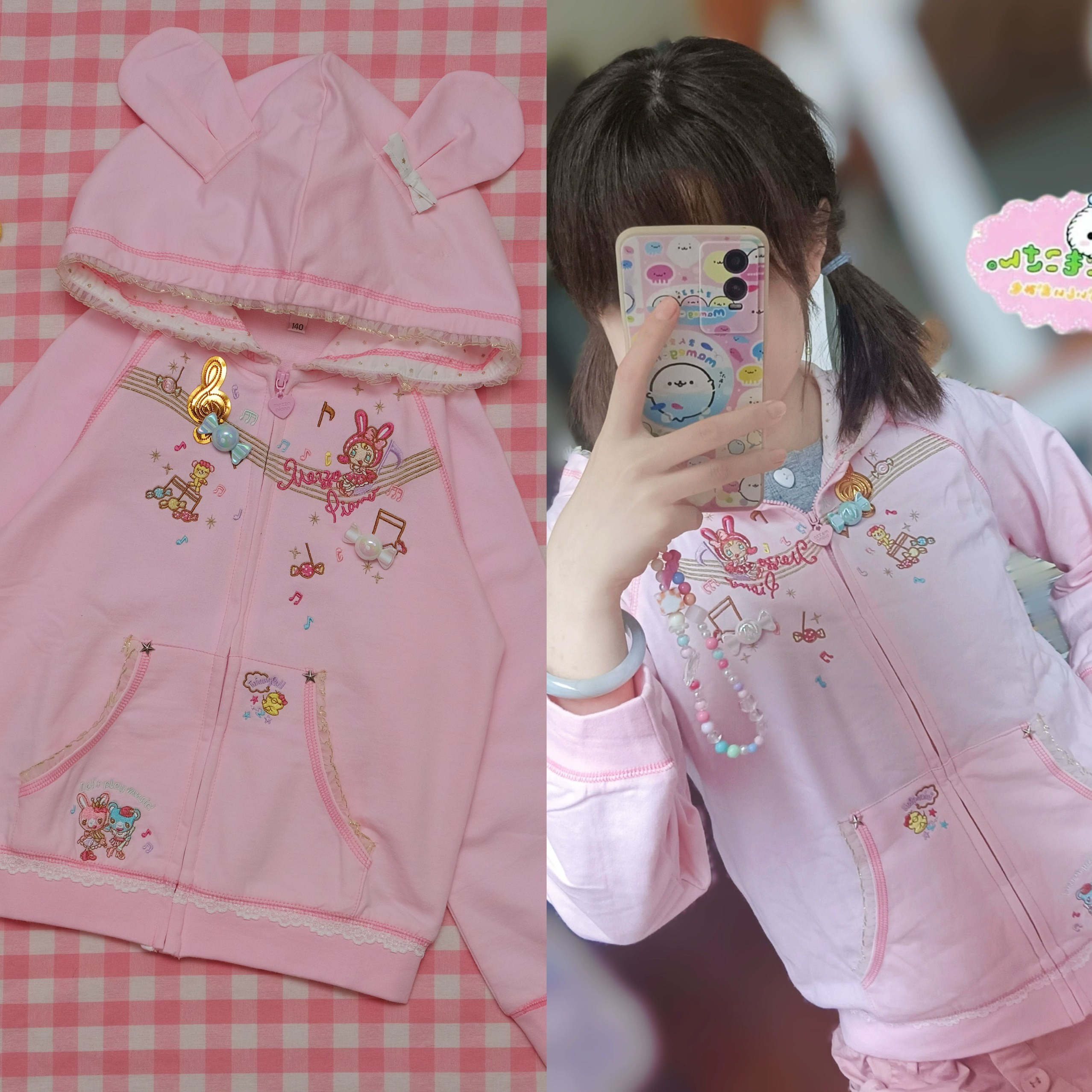 Japanese Y2K Cute Pink Sweatshirt Pink Soft Girl Sweet Girl Style Nakanaibi Daughter Outfit Girl Loli Spring and Autumn