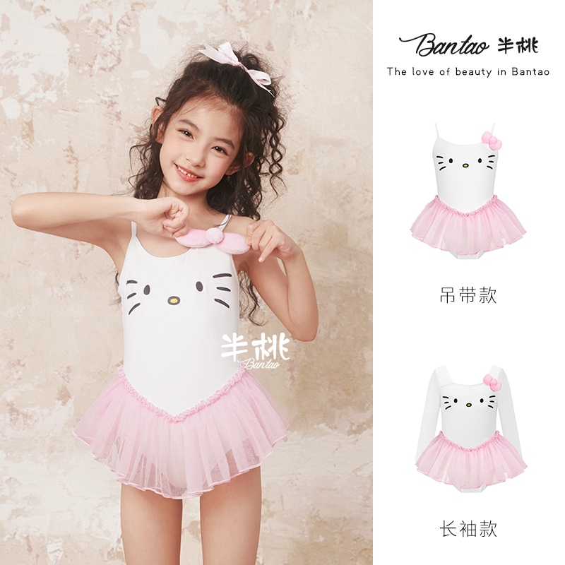 Half-Peach Bantao Peach Little Cat Children's Bow Ballet Dance Costume Gymnastics Practice Clothes Puffy Skirt Strap Bodysuit