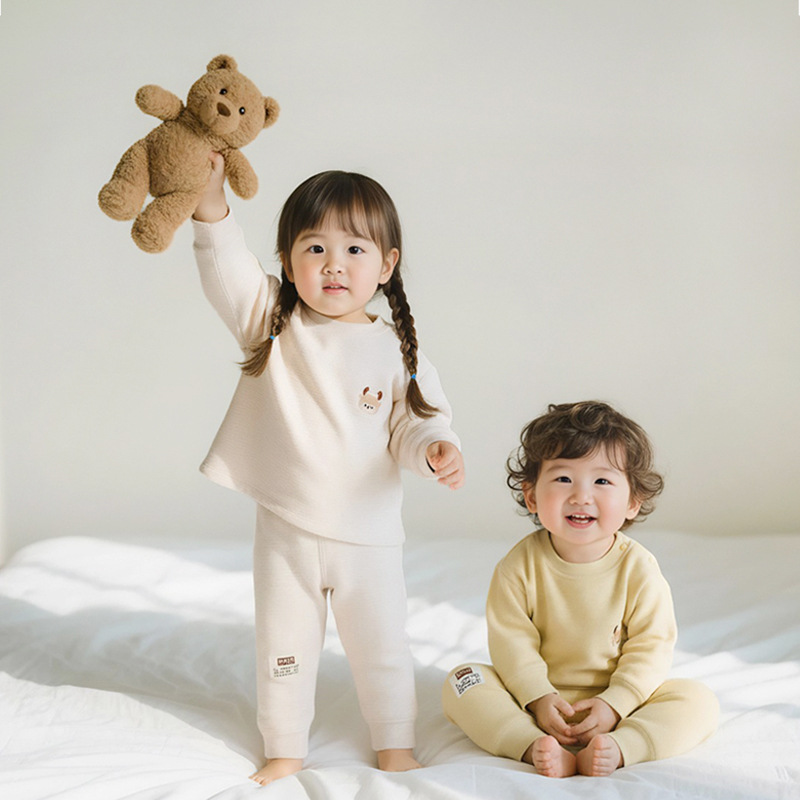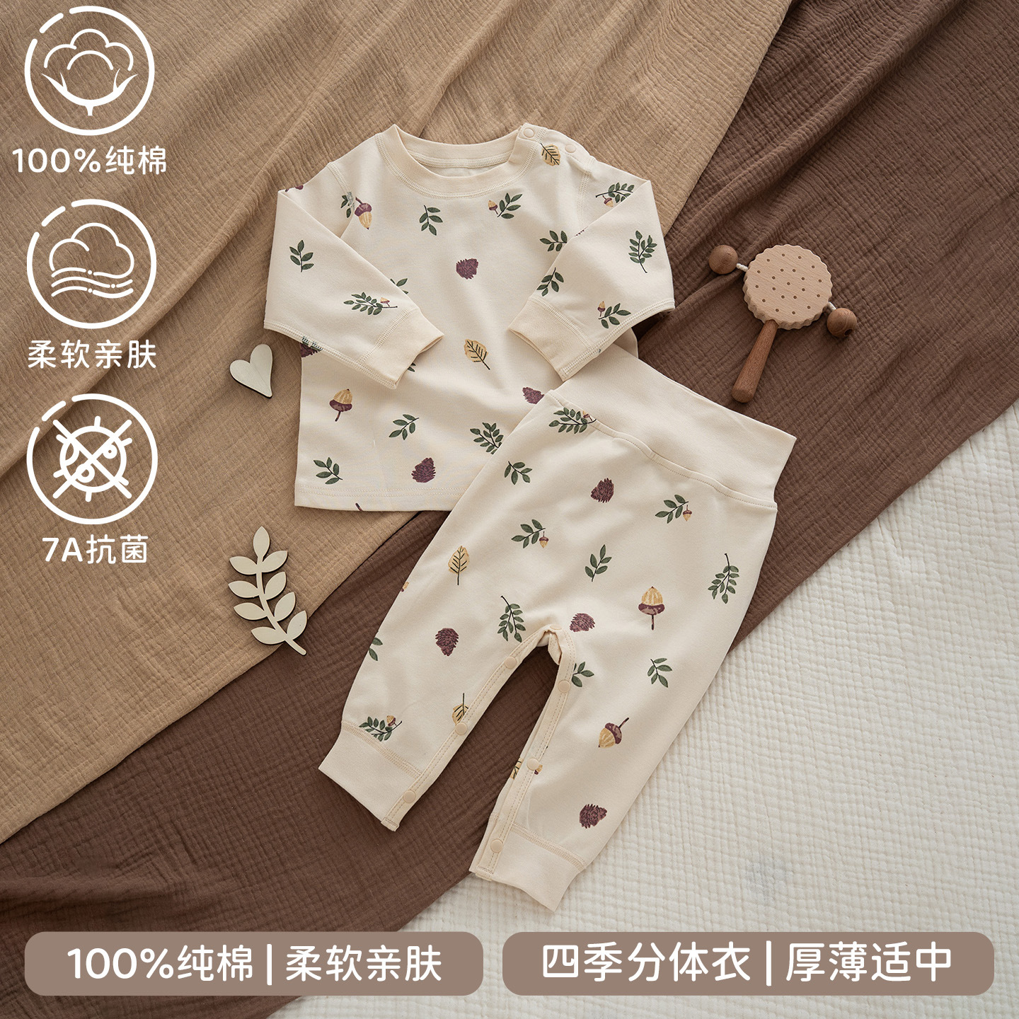 Boys and Girls Baby Spring and Autumn Two-Piece Set Infant Home Wear Base Layer Thermal Pajamas Pure Cotton Open-Crotch Belly Protection
