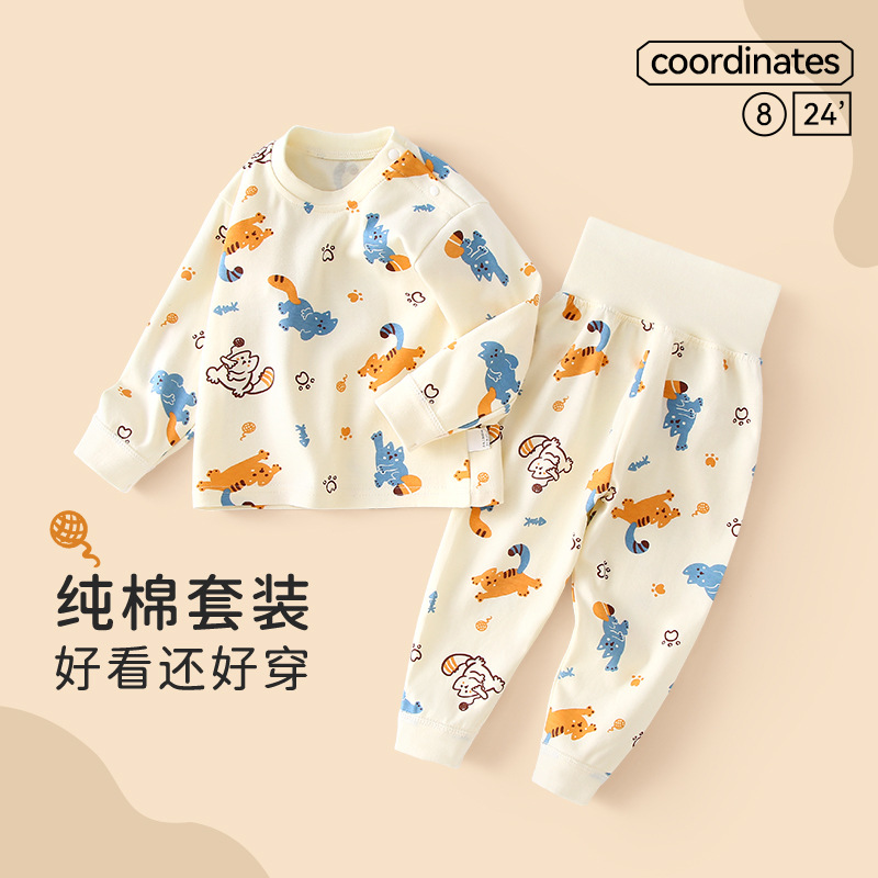 Baby underwear suit spring and autumn pure cotton baby home wear high waist belly protection split boys and girls autumn clothes long pants