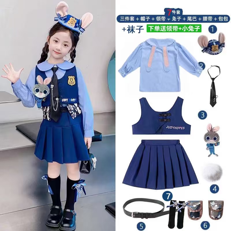 Girls' Bunny Police Officer Cosplay Outfit Spring, Summer, Autumn Children's School Style Jk Suit Lolita Halloween