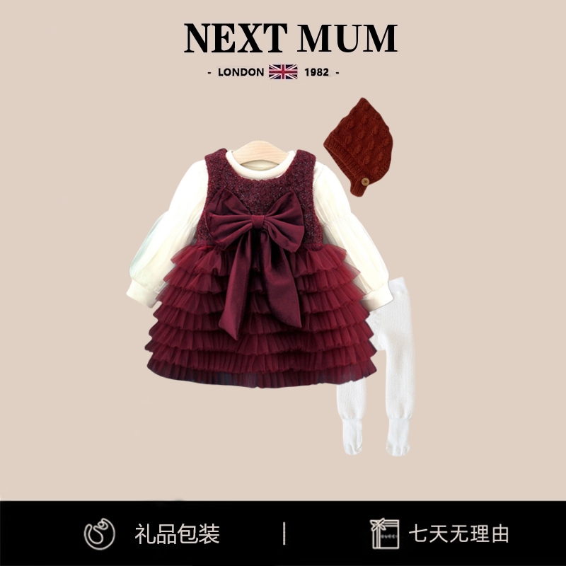 British Next Mum Autumn and Winter Dress Baby Girl One-Year-Old Dress Skirt New Year Princess Dress