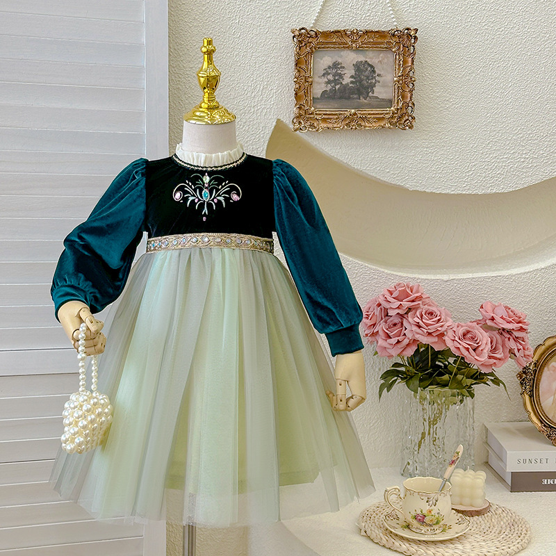 Girls Dress 2025 Autumn New Fashionable Baby Girl Birthday Dress Dress Ice Queen Anna Princess Dress