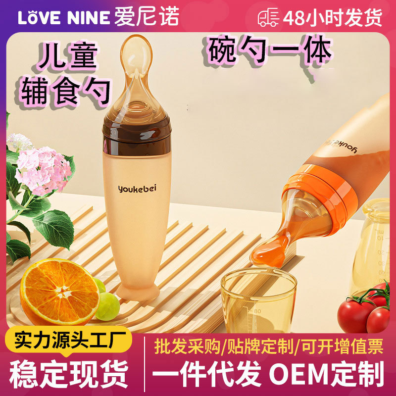 Baby food supplement spoon silicone spoon newborn baby rice paste spoon milk bottle squeezing soft spoon baby feeding food supplement tool