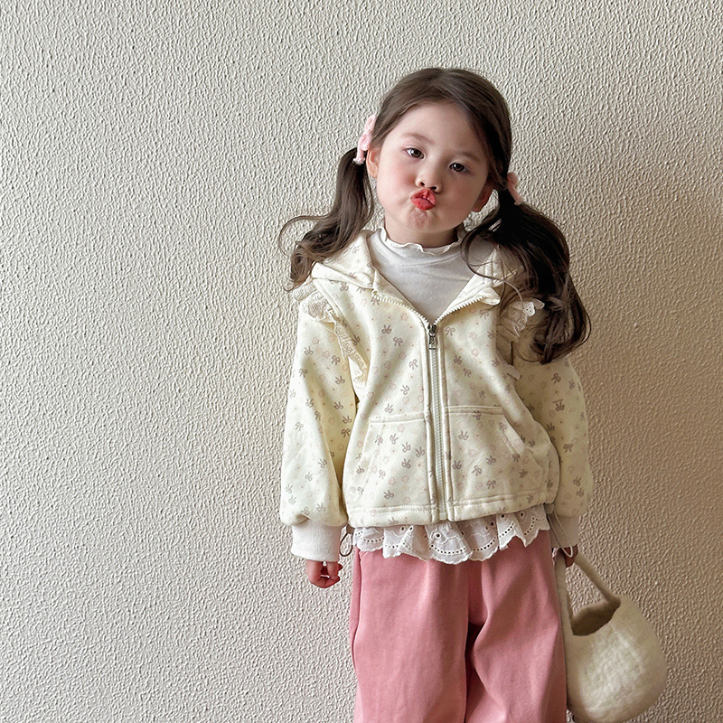 Autumn and Winter Female Baby Casual Western Style Cartoon Hooded Color fleece-lined Cotton Outgoing Windproof Jacket