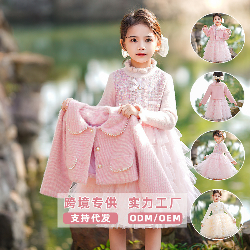 Girls' Winter dress Baby's Western Style Children's Personality Trendy Fragrant Style Thickened Gauze Woolen Princess Vessel Dress