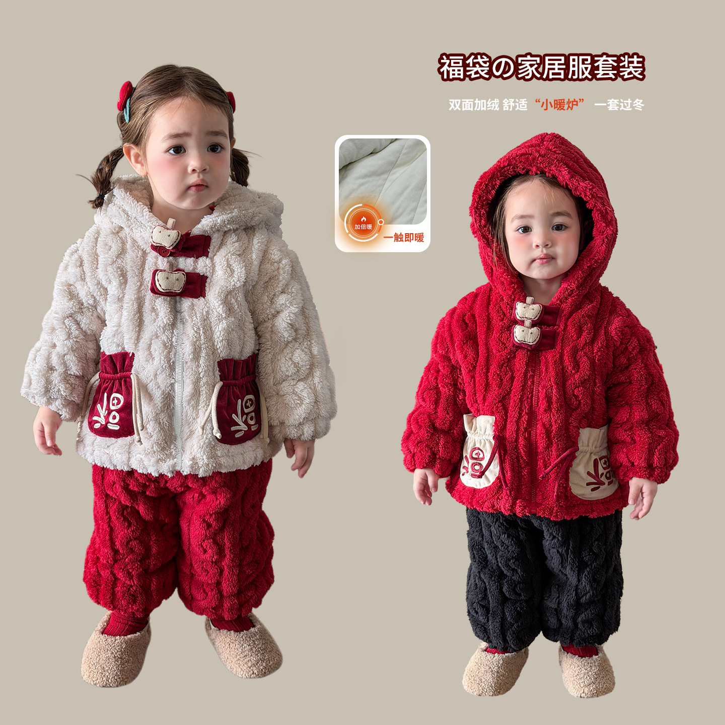 Children's Pajamas 2025 New Winter Thickened Girls' Loungewear Set New Year Outfit Baby Girl Clothes