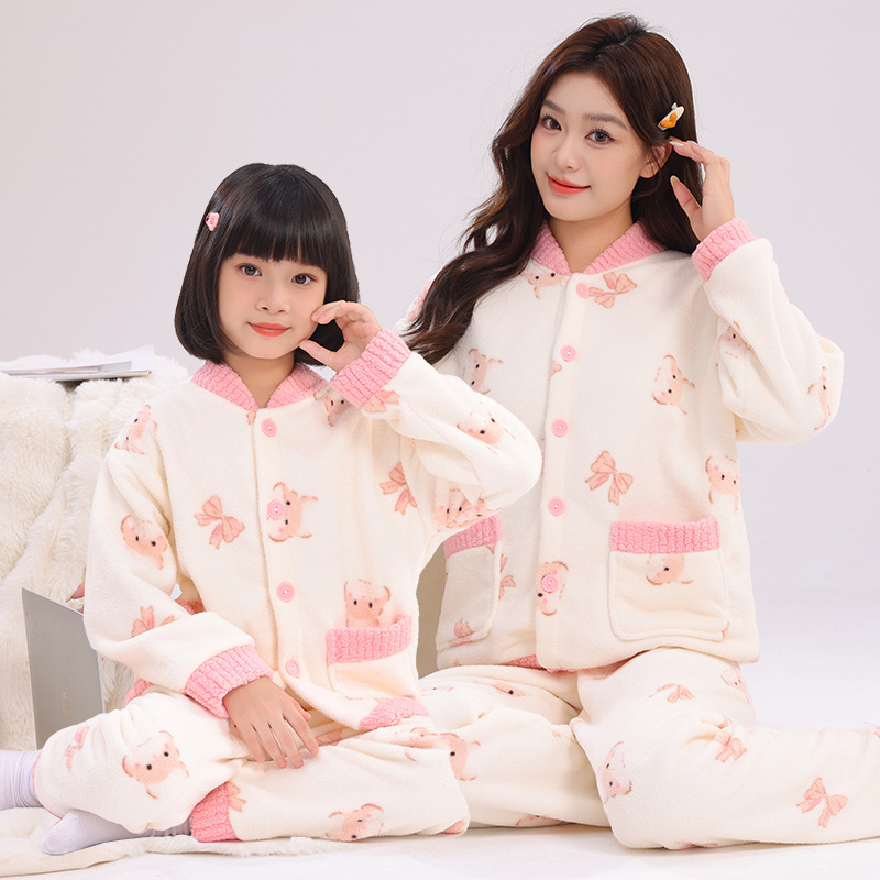 Autumn and Winter Warm and Thickeneded Cloud Velvet Cartoon Pajamas Set for Older Boys and Girls, Kidsren and Adults, Family Wear