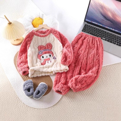 Girls' Coral Velvet Pajamas Thickeneded Warm Winter Flannel Baby Girl Autumn and Winter Kidsren's Home Clothes Boys