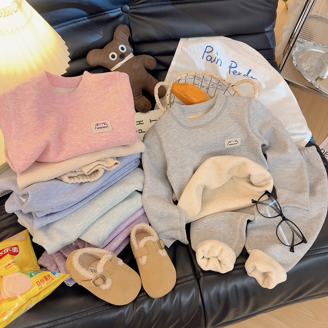 Children's Underwear Set Derong New Boys Autumn Clothes Plus Velvet Baby Girl Autumn Clothes Autumn Pants Home Clothes Children's Clothing Wholesale
